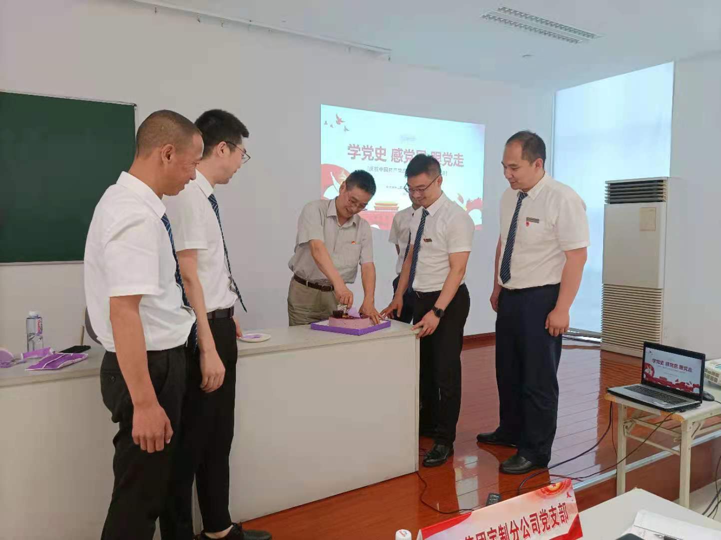 此外,公司特地準備了生日蛋糕,各位黨員一起“為黨慶生”,向黨的百年華誕獻禮。