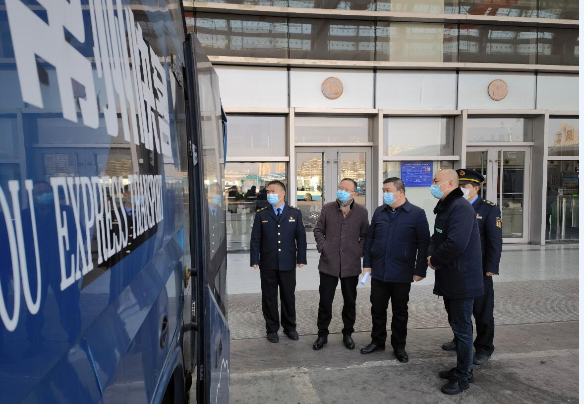 1月12日上午,省交通運輸綜合執(zhí)法局調研員周黃德一行至常州汽車客運站就道路運輸疫情防控進行督導檢查,市交通運輸執(zhí)法支隊副支隊長王丁柱,集團公司副總經(jīng)理費軒龍及站務分公司負責人陪同督查。