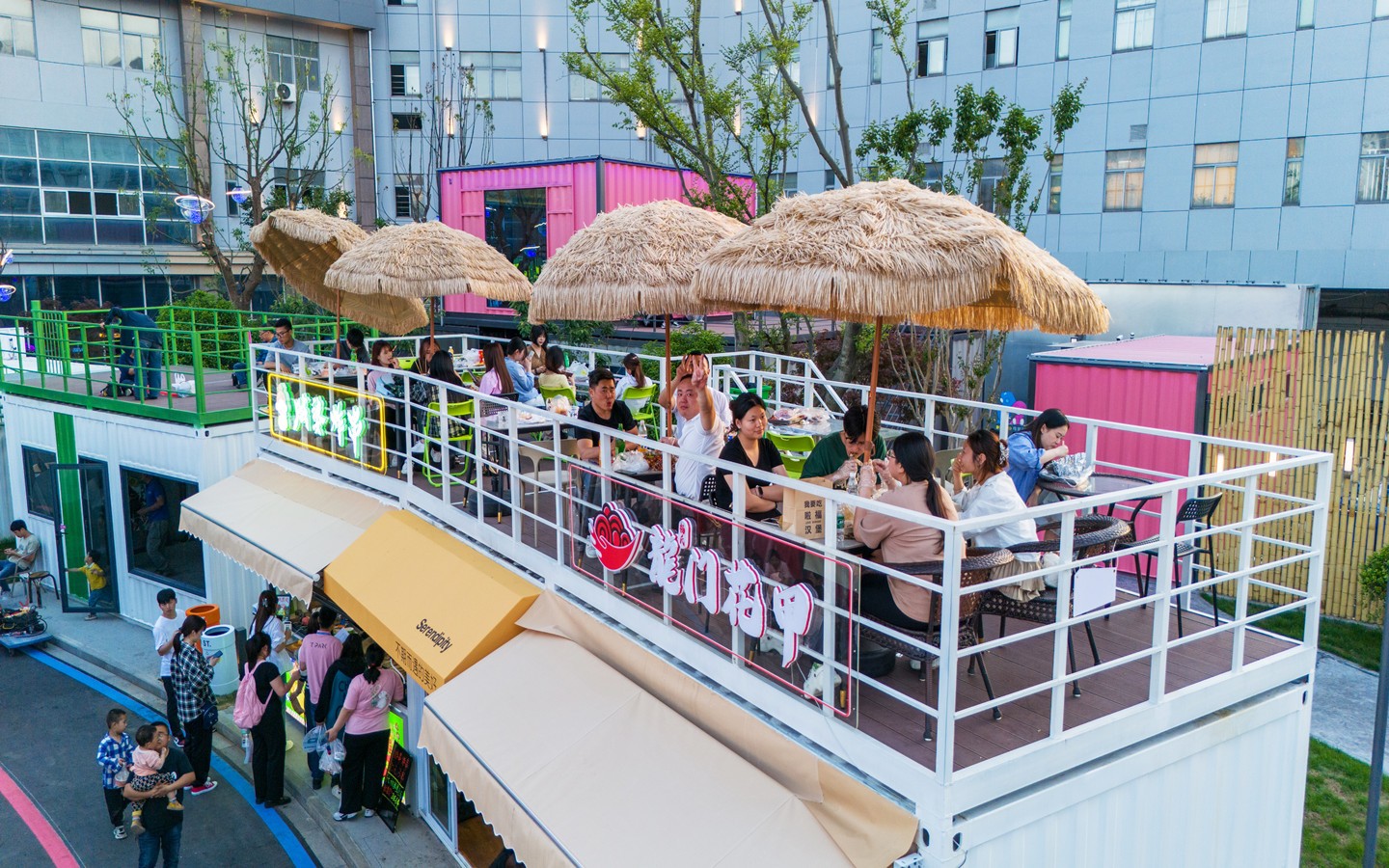 的核心銜接點;身處長三角知名產(chǎn)教城融合示范區(qū),緊鄰常州大學城、科教城。街區(qū)占地約120畝,已投資1.5億元,定位“Z世代”青年網(wǎng)紅潮集地,切中文商旅融合、夜經(jīng)濟、她經(jīng)濟,通過創(chuàng)意餐飲、文創(chuàng)市集、微醺空間、日咖夜酒、潮流運動、藝術(shù)研學、宴會中心、網(wǎng)紅書屋、親子文娛、城市營地等多功能社交業(yè)態(tài),立足打造長三角城市微度假特色目的地與文旅新地標。作為開放式城市公園風格,街區(qū)分“東中西”3大區(qū)域、7塊生活版塊,聚集了創(chuàng)意餐飲、文創(chuàng)市集、潮流運動、藝術(shù)研學、親子文娛、城市營地等多功能社交業(yè)態(tài)。其中,“運動+藝術(shù)”雙活動廣場超1萬平方米,汽車、森系街區(qū)、無界秀場、國際友人俱樂部、青年情緒引力場等創(chuàng)意主題空間將陸續(xù)上線。